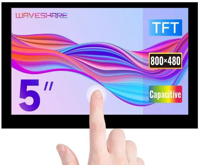 5inch TFT screen, hardware resolution is 800x480. Capacitive touch panel, support 5-point touch.