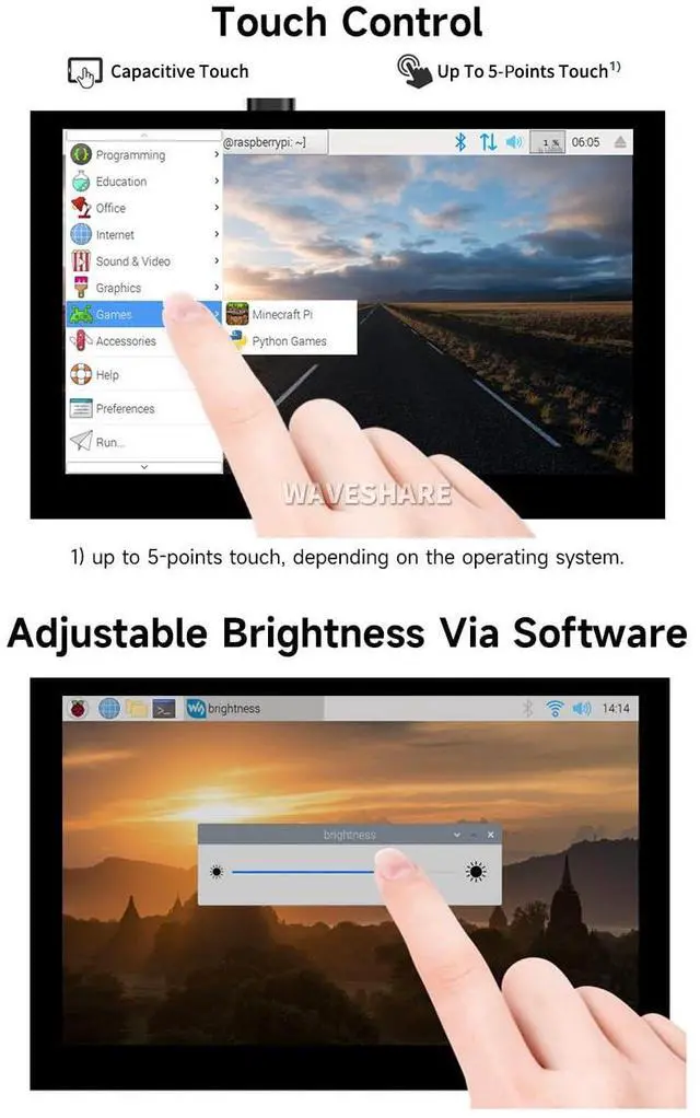 waveshare 5inch Capacitive Touch Display Compatible with Raspberry Pi 5/4B/3B+/3A+/3B/2B/B+/A+/CM3/3+/4 800×480 Resolution DSI Interface