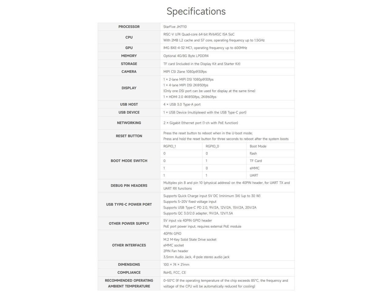 - Onboard RV64GC-ISA Quad-Core 64-Bit SoC, Operating Frequency Up To 1.5GHz. Compatible with OpenCL 3.0/OpenGL ES 3.2/Vulkan 1.2