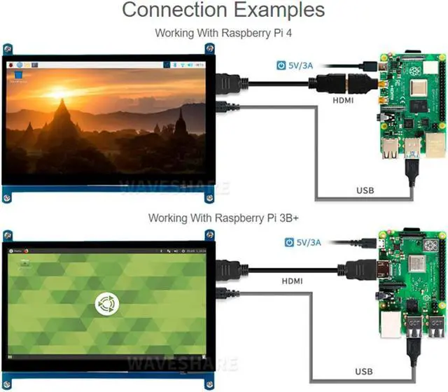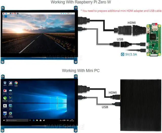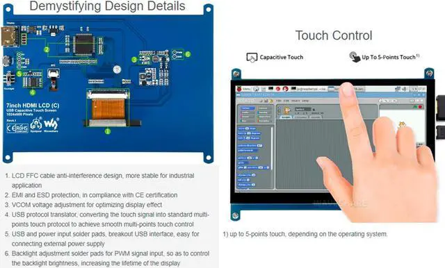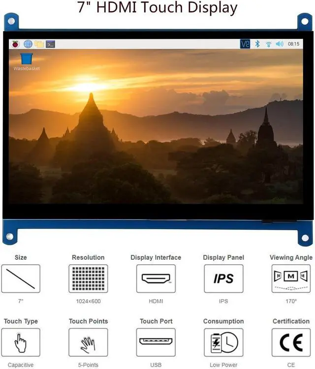 7inch IPS screen, 1024x600 hardware resolution, Capacitive touch control, Supports popular mini PCs, Compatible with Raspberry Pi, BB Black, as well as general desktop computers.