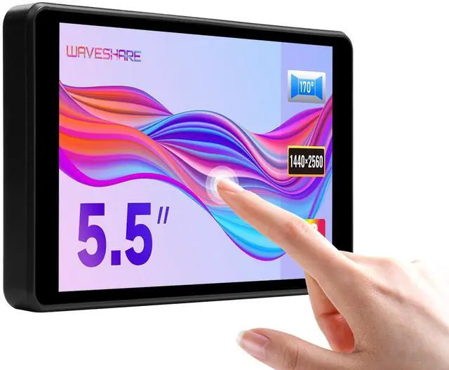 waveshare 5.5 inch 2K Capacitive Touch LCD Display Compatible with Raspberry Pi 5/4B/3B+/Pi 3B/Zero 2w/Zero w and CM4 Supports Windows 11/10/ 8.1 /8/7, wihout Case