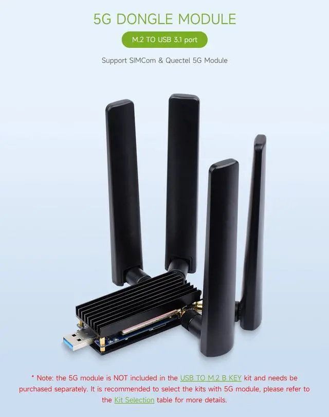 • Support 5G modules with M.2 (NGFF) Key B interface, compatible with SIMCom and Quectel 5G modules