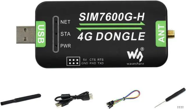 Waveshare SIM7600G-H 4G DONGLE with Antenna with Industrial Grade 4G Communication and GNSS Positioning Peripheral Supports Global Band.
