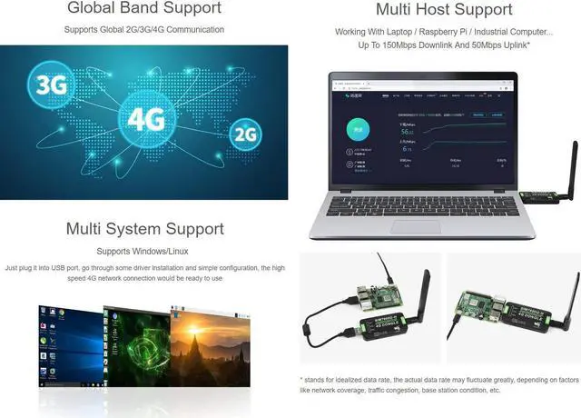 Supports 2G/3G/4G network connection, global band Driver provided, for operating systems including Windows/Linux