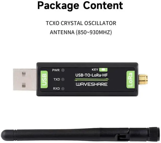 Waveshare USB to LoRa Data Transfer Module, Based On SX1262, Suitable for Data Acquisition in Industry and Agriculture-TCXO Crystal oscillator
