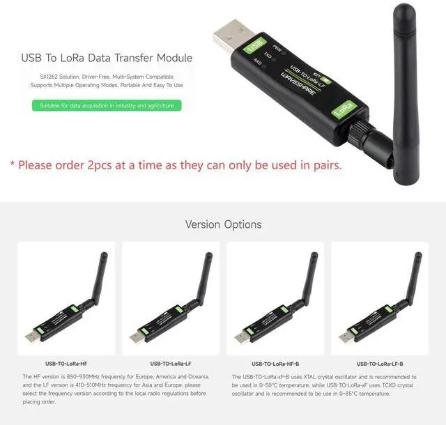 • USB-TO-LoRa-xF uses TCXO crystal oscillator and is recommended to be use in 0~85 temperature.