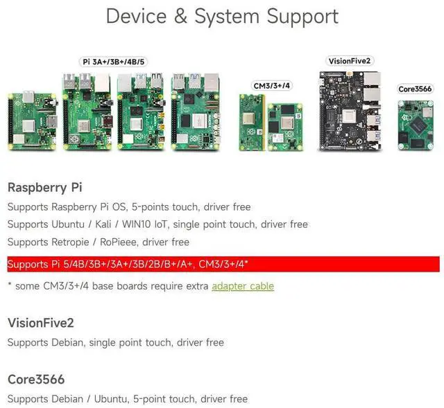 Supports Pi 5/4B/3B+/3A+/3B/2B/B+/A+, CM3/3+/4* (CM3/3+/4 requires extra adapter board)