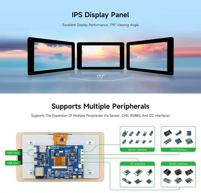 Waveshare ESP32-S3 7inch Capacitive Touch LCD Development Board, ESP32 with Display, 800×480, 5-Point Touch, Up to 240MHz Frequency, Supports WiFi & Bluetooth, with Onboard Antenna