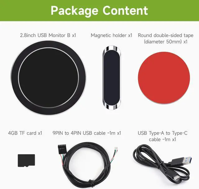 [Real Time Display]Benefit from the high-performance processors, the watercooler screen supports real time display monitoring data, 480×480 Resolution, 2.8inch round monitor with Black CNC Metal Case.