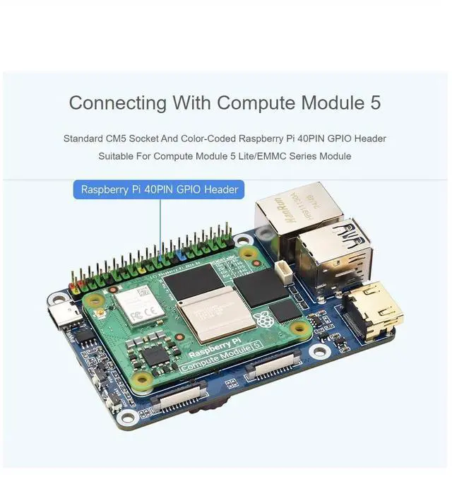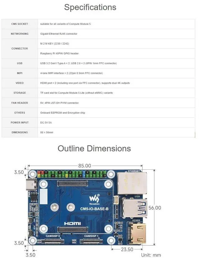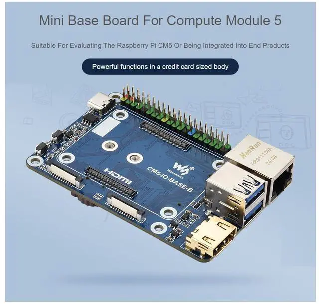 As the IO board of the Raspberry Pi Compute Module 5, CM5-IO-BASE-B is a baseboard that can be used with the Raspberry Pi Compute Module 5. With