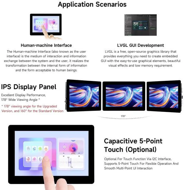 Display: Onboard 5inch LCD display, options for 800×480 resolution, 65K color