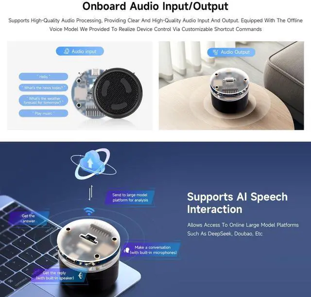 Advanced Voice Interaction: The dual microphone array is designed with noise reduction and echo cancellation features, enabling accurate speech recognition and responsive near/far-field wake-up functionality, perfect for voice-activated applications.