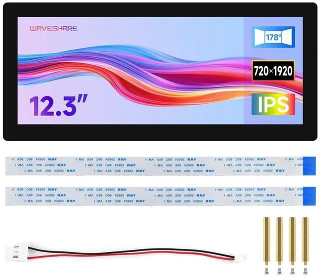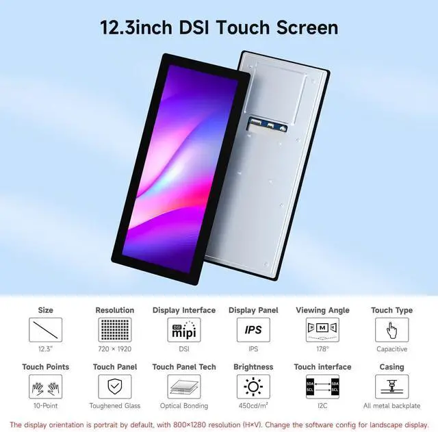 waveshare 12.3 inch DSI Capacitive Touch Screen, Compatible with Raspberry Pi 5 / CM5 and RK3576, 720 × 1920, IPS, 10-Point Touch, Optical Bonding Toughened Glass Panel