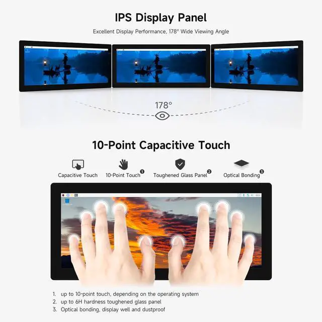 Responsive Touch Interface: It supports 10-point capacitive touch, providing precise and responsive touch input for seamless interaction.