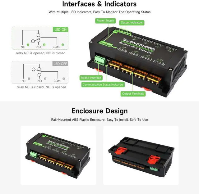 High-Quality Relay & Durable Enclosure: Uses a high-quality relay with a contact rating of 30A 250V AC or 30A 28V DC, housed in a rail-mounted ABS plastic enclosure for eas