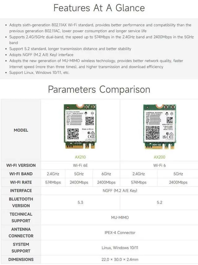 NGFF (M.2 A/E Key) Interface: Utilizes the latest NGFF interface for easy installation and compatibility with a wide range of devices.