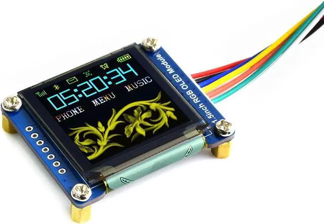 This RGB OLED screen is fully compatible with development environments such as Rasp-berry Pi, Ar-duino, and STM32. It is widely used in DIY electronics, smart display panels, wearables, instrumentation