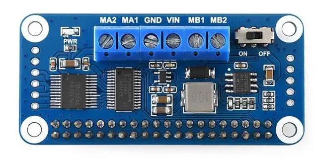 OverviewThe Motor Driver HAT is designed for Raspberry Pi, controlled via I2C interface, will drive two DC motors at the same time. It's an ideal choice for you to DIY mobile robots. FeaturesStandard Raspberry Pi 40PIN GPIO extension header, supports Raspberry Pi series boardsI2C controlled, by setting 5 address jumpers, it is stackable up to 32 this modulesOnboard PCA9685 chip, provides 12-bit hardware PWM to adjust motor speedOnboard TB6612FNG dual H-bridge motor driver, high efficiency, low heatingIntegrates 5V regulator, up to 3A output current, can be powered from battery through VIN terminalReserved I2C control pins, allows to work with other control boardsComes with development resources and manual (examples in BCM2835, wiringPi, and