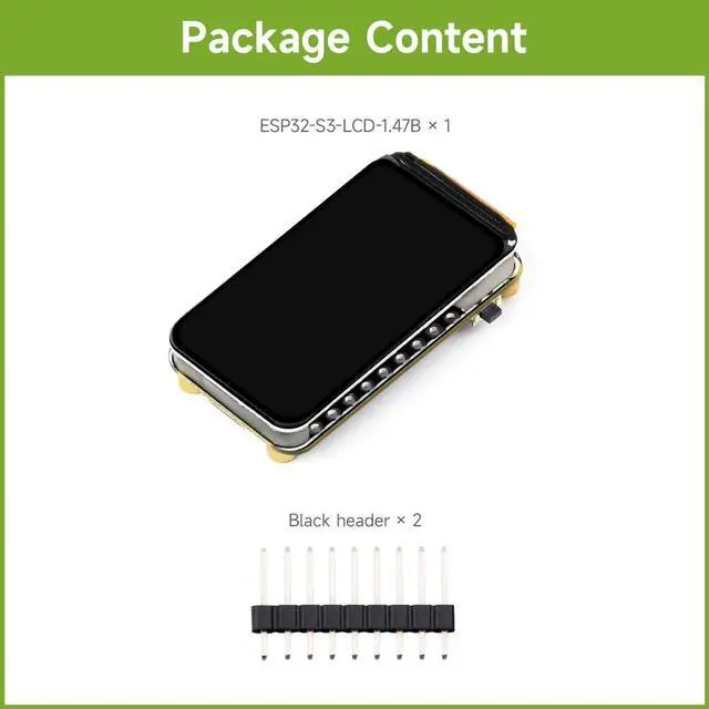 The ESP32-S3-LCD- 1.47B features a high-performance Xtensa 32-bit LX7 dual-core processor, running at up to 240MHz, ideal for advanced HMI applications. ^^ It supports 2.4GH z Wi-Fi ( 802.11 b/g/n) and Bluetooth 5 (LE) with an onboard antenna, ensuring reliable wireless connectivity. ^^ The board is equipped with 512KB SRAM, 384KB ROM, 16MB Flash, and 8MB PSRAM, providing sufficient storage for efficient operation and program execution. ^^ It includes a 1.47 -inch LCD display with 172320 resolution and 262K colors, alongside a 6-axis IMU for motion sensing and gesture detection.