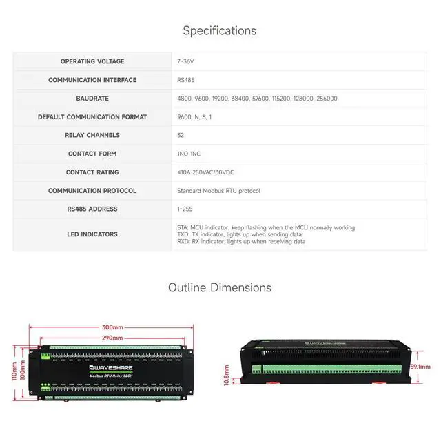 rating: 10A 250VAC/30VDC. Rail-mounted ABS case, easy to install, safe to use. 3 LEDs for indicating the MCU status and signal transceiving status
