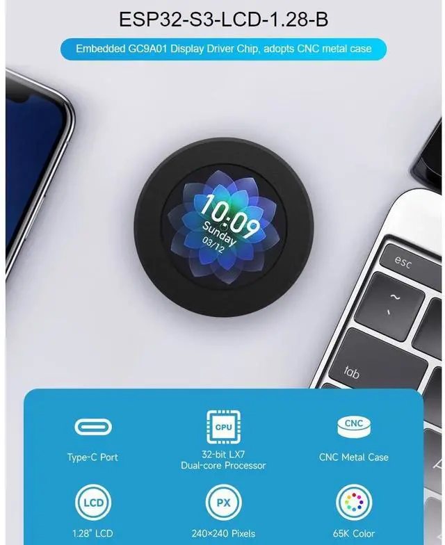 Range (Optional): 16, 32, 64, 128, 256, 512, 1024, 2048/sec Package Content ESP32-S3-LCD- 1.28 -B x1 Screwdriver x1
