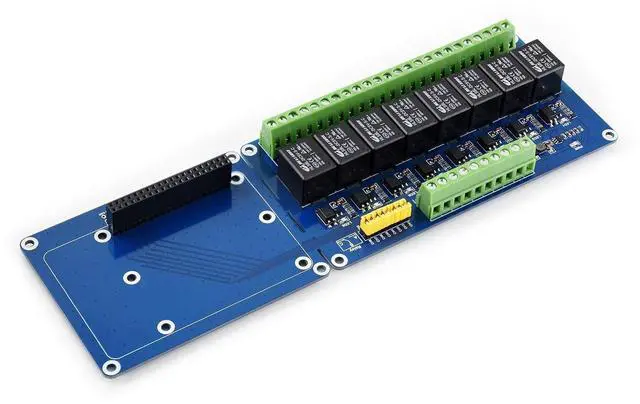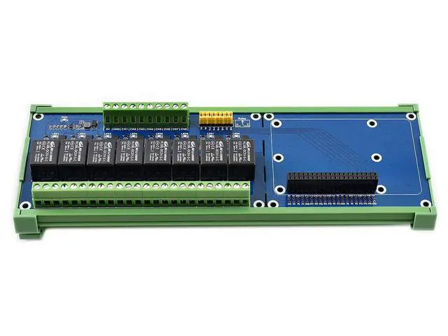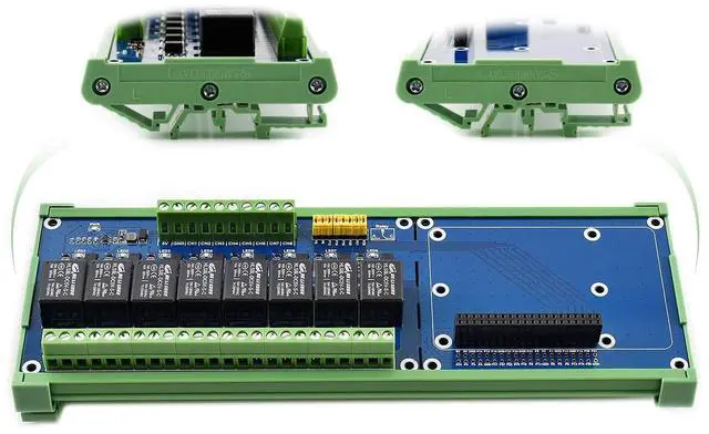 Standard Raspberry Pi 40PIN GPIO extension header, supports Raspberry Pi series boards, Jetson Nano ^^ High quality relays, loads up to 5A 250V AC or 5A 30V DC. Photo coupling isolation, prevent interference from high voltage circuit ^^ Standard rail mount bottom case. Onboard LEDs for indicating relays status ^^ Relay control pin selection jumper, allows to control the relays by custom pins other than the default pins. Reserved control Interface, allows to work with controllers like PLC ^^ Comes with development resources, including examples in wiringPi, bcm2835, python, python-bottle (webpage control), and crontab (cron job)