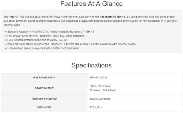 PoE/PoE+ Compatibility: Supports IEEE 802.3 af/at-compliant Power Over Ethernet (PoE/PoE+) for Raspberry Pi 3B+/4B, enabling both power and network connectivity through a single Ethernet cable. ^^ Standard 40-PIN