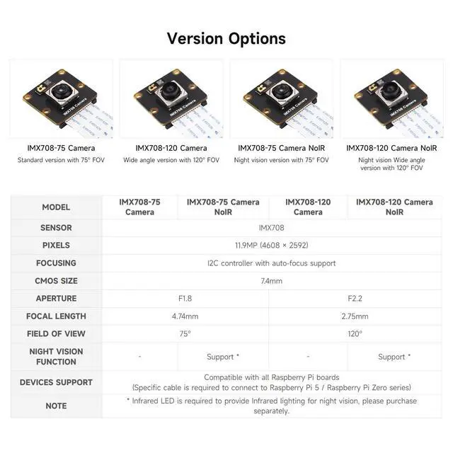 Official Raspberry Pi Compatibility: This camera series utilizes the Official Raspberry Pi Camera Module 3 Sensor Assembly based on the IMX708 sensor, ensuring full compatibility with Raspberry Pi boards for seamless integration into your projects.