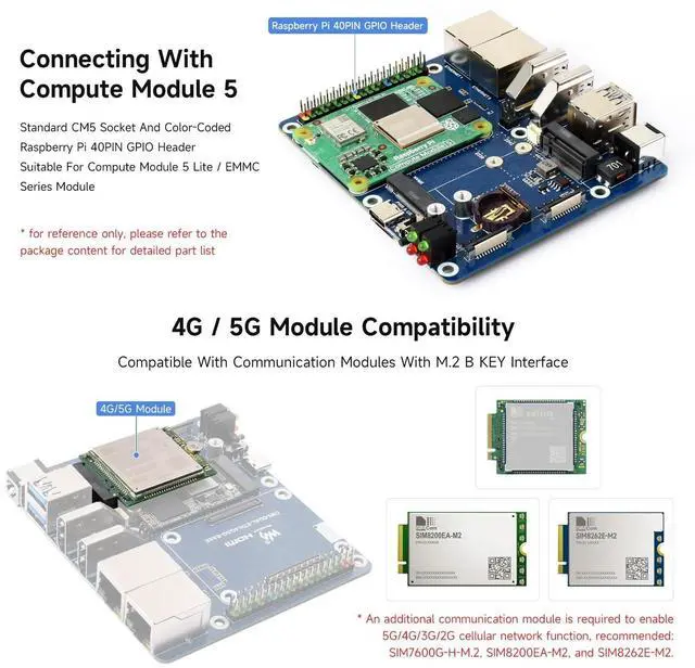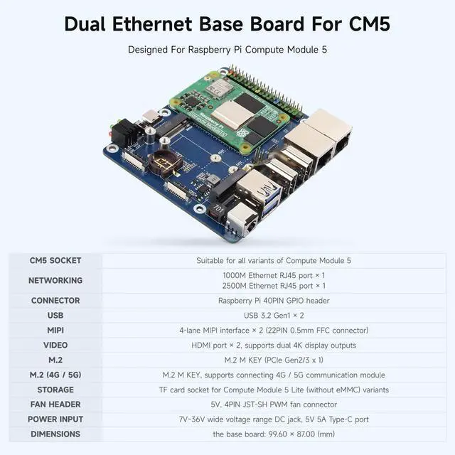 CM5 Socket: Compatible with all variants of the Compute Module 5, offering flexibility in hardware configurations.