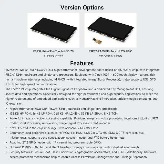 ^^ Memory Configuration: Equipped with 128 KB HP ROM, 16 KB LP ROM, 768 KB HP L2MEM, 32 KB LP SRAM, and 8 KB TCM, offering ample memory for efficient data handling. ^^ Advanced Image and