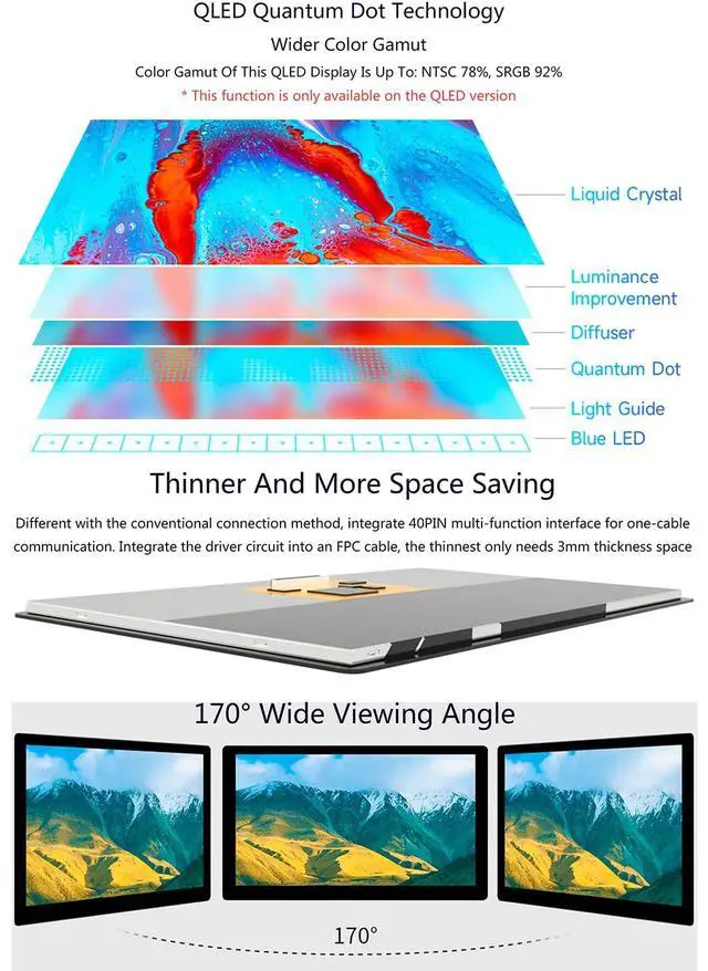 5-Point Capacitive Touch: Gently touch, and see what you get, enjoy multi-point UI interaction via Flexible operation. Adapting touch function with USB signal, support 5-point touchQLED