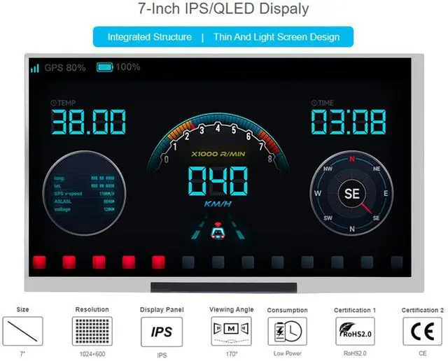 Device & System Support: Support Windows / Linux / Android main board which has HDMI signal and USB touch signalSupport backlight control, more power saving. Application ScenariosNew energy, electronic sentinel, human-machine interface, smart home IoT, Industrial applications, consumer electronicsPackage Content7inch IPS Display x1FPC cable (~ 15cm) x1Development Board Accessories