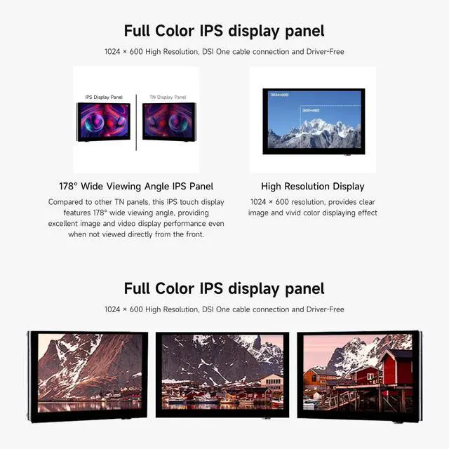 Connection and Driver-Free: Simplifies installation with a single DSI cable connection and eliminates the need for additional drivers, making it easy to integrate into your system. ^^ Wide Viewing Angle & Excellent