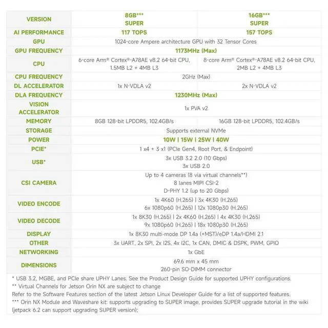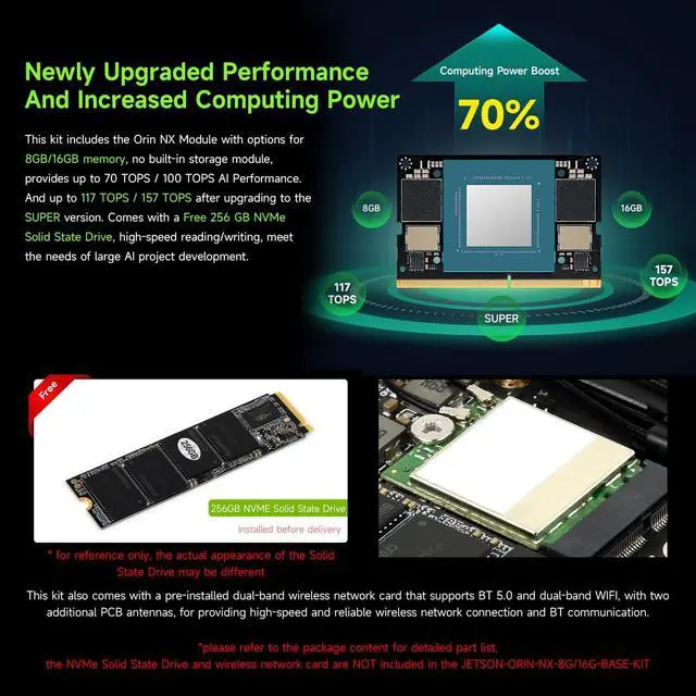 ^^ Powerful software support: Compatible with the NV Jetson software stack, it offers pre-trained models and development tools to accelerate the development and deployment of AI applications, suitable for fields such as robotics and smart cities.