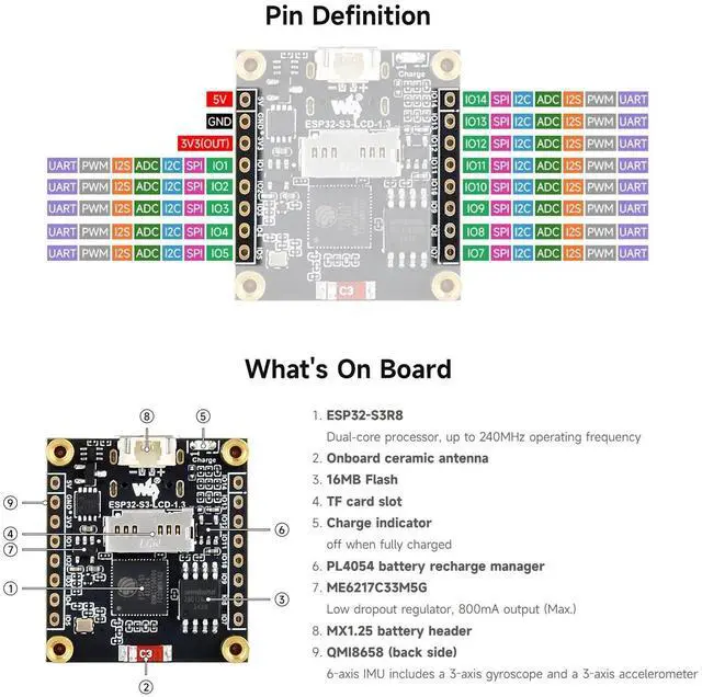 High-Resolution Display: Features a 1.3" LCD with a resolution of 240240 pixels, providing sharp visuals with 262K colors.