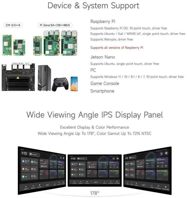 Device & System Support: Supports all versions of Raspberry Pi. Support Jetson Nano/Jetson Orin Nano. Supports Windows 11 / 10 / 8.1 / 8 / 7, 10-point touch, driver free. Support Game Console and Smartphone ^^ Configurable