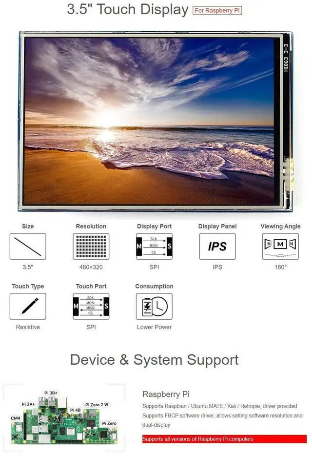 ^^ Wide Compatibility: The display is compatible with various Raspberry Pi models, including Raspberry Pi 4, 3, 2, and Zero, and works with multiple Raspberry Pi operating systems such as Raspbian, Ubuntu, and RetroPie.