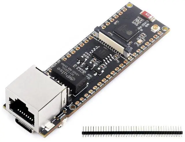 FeaturesAdopts ESP32-S3R8 high-performance chip with Xtensa 32-bit LX7 dual-core processor, capable of running at 240 MHzIntegrated 512KB Static Random-Access Memory, 384KB ROM, 8MB PSRAM and 16MB Flash memoryIntegrated 2.4GH z Wi-Fi and Bluetooth 5 (LE) wireless communication, with an onboard antenna. Supports switching to use external antennaOnboard W5500 Ethernet chip for extending 10/100Mbps network port through SPI interfaceOptional for PoE module to realize Power over Ethernet function (IEEE 802.3 af-compliant)Onboard camera interface, compatible with OV2640, OV5640 and other mainstream cameras for image and video captureOnboard USB Type-C port for power supply, program downloading, and debugging, more convenient for development useOnboard TF card slot for external TF card storage of pictures or filesCompatible with Pico header, onboard multiple peripheral interfaces, offering strong compatibility and expandabilityPackage ContentESP32-S3-ETH x140PIN male pinheader (black) x1NOTE: Online Development Resources and Technical Support are provided, please feel free to contact us if you have any problem!