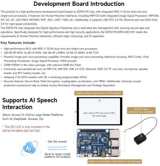 ^^ Comprehensive Peripheral Support: Includes a wide range of interfaces such as MIPI-CSI, MIPI-DSI, SPI, I2S, I2C, UART, ADC, and more, enabling versatile connectivity options for various projects.