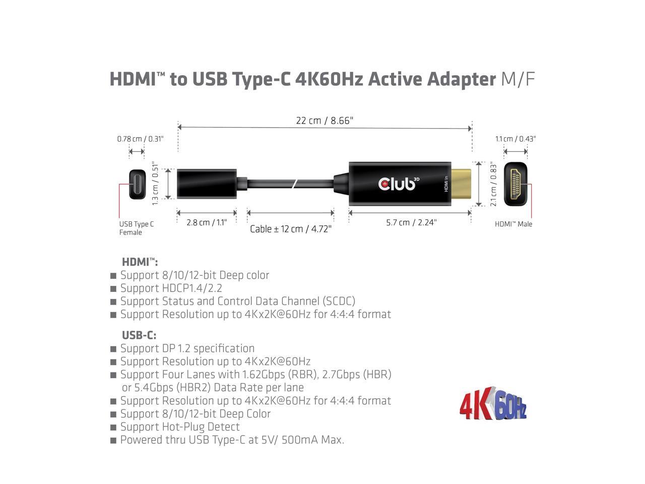 Club3D CAC-1333 HDMI 2.0 to USB Type C 4K60Hz M/F Active Adapter