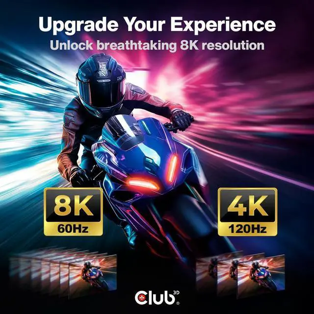 HIGH-RESOLUTION SUPPORT: Club 3D USB c to DisplayPort Supports UHD resolutions up to 3840*2160 (4k) @ 120Hz or 7680*4320 (8k) at 60Hz, HDR, Thunderbolt 3 port, Support for 120 FPS, Ultrahigh-resolution monitor or TV. Supporting up to 8 channels of audio ^^