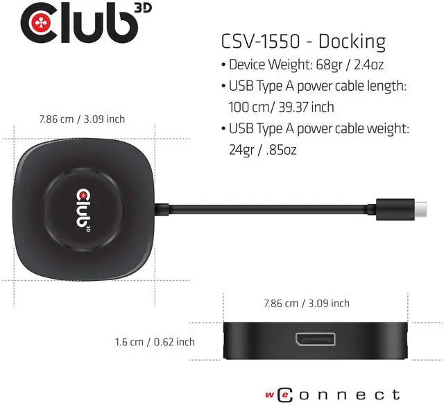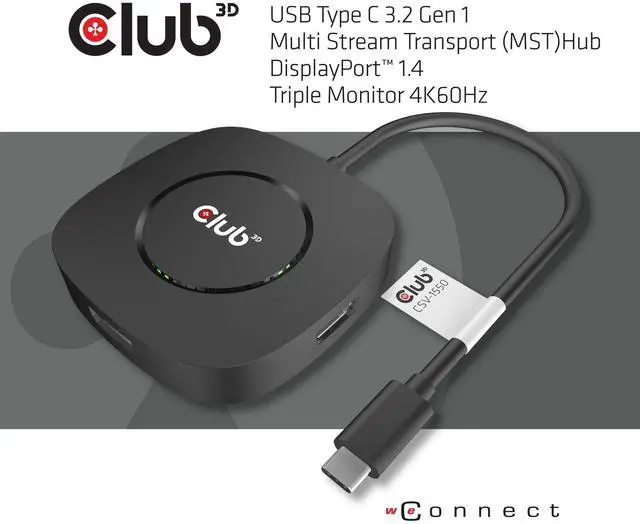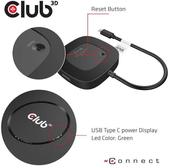 ^^ PLUG AND PLAY: This USB Type C to DisplayPort hub does not need external power, the device comes with a green LED light and a reset button to perform the reset for all 3 ports, Club 3D provides 2-year warranty and free technical support.