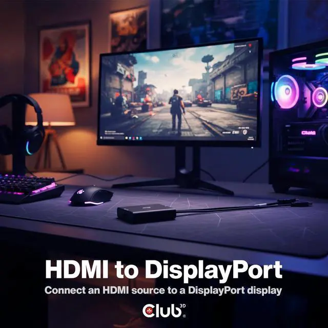 ^^ UNIVERSAL DEVICE COMPATIBILITY: Seamlessly connects HDMI-equipped laptops, desktops, gaming consoles (PS5, Xbox Series X), and streaming devices to any DisplayPort monitor.