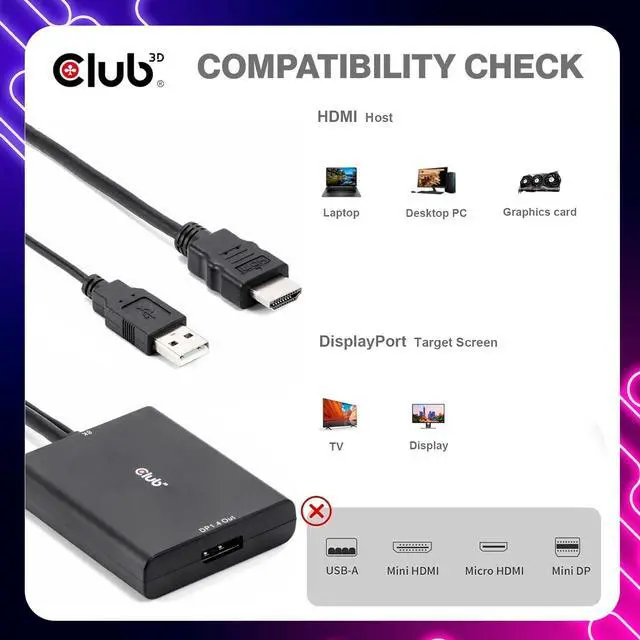 ^^ ACTIVE SIGNAL CONVERSION: Built-in chipset technology properly translates HDMI signals to DisplayPort protocol, ensuring stable connection and optimal picture quality. ^^
