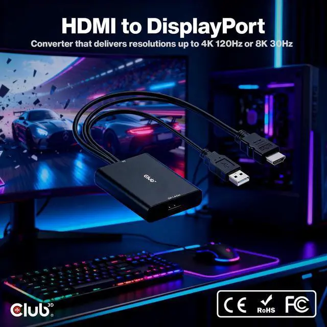ULTRA HD PERFORMANCE: Convert HDMI 2.1 signals to DisplayPort 1.4 with stunning 4K resolution at 120Hz or 8K at 30Hz. Perfect for next-gen gaming consoles, high-performance PCs, and creative workstations ^^