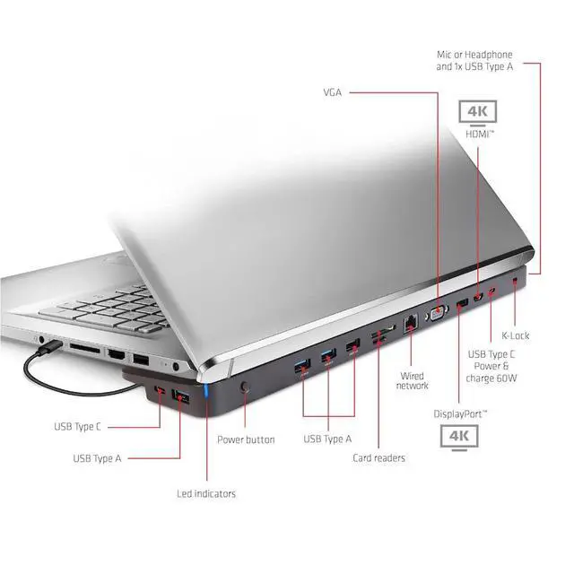 ^^ COMPACT: Designed for frequent travellers, this dock is a lightweight and integrated solution combining Video, Data, Power, Ethernet, and Audio all in one device, making it easy to take with you on the go.
