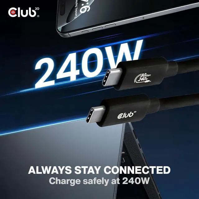 Club 3D USB-C Cable 8K 240Hz 240W Power Delivery ^^ USB 80Gbps IF Certified ^^ 3.94 ft - 1.2m ^^ Type-C Cable for MacBook Pro, Gaming Monitor, Thunderbolt 5 Display, CAC-1570