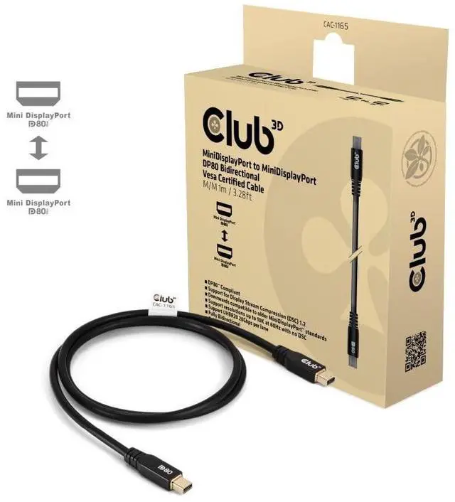 VESA CERTIFIED: High-quality Club 3D VESA Certified Mini Displayport to mini DisplayPort cable, Works with DP and DisplayPort++, Thunderbolt 2 port compatible. Club 3D uses Bio-Degradable bags according to the EN/DIN 13432 ^^