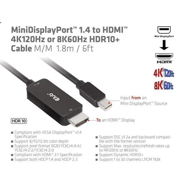 Connect 8K 60Hz or 4K 120Hz gaming monitors & TVs to laptops, PC's with a Mini Displayport 1.4 connection. Enjoy high-quality video with no loss in picture quality with a mini display port 1.4 to
