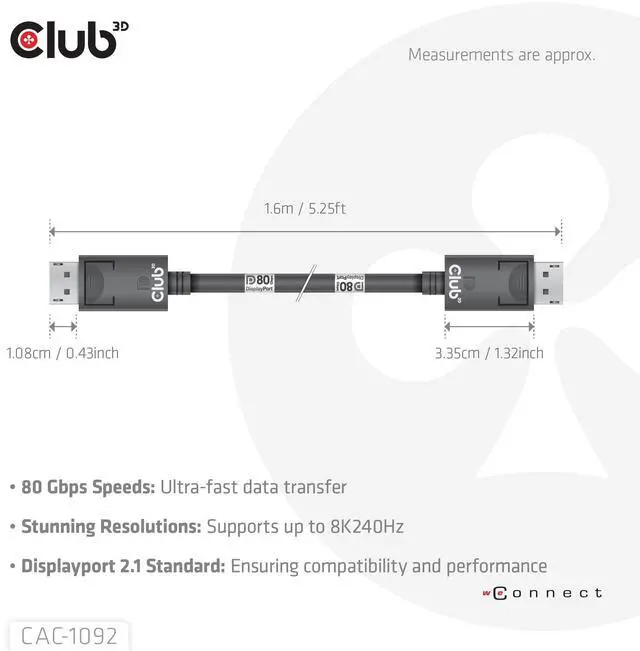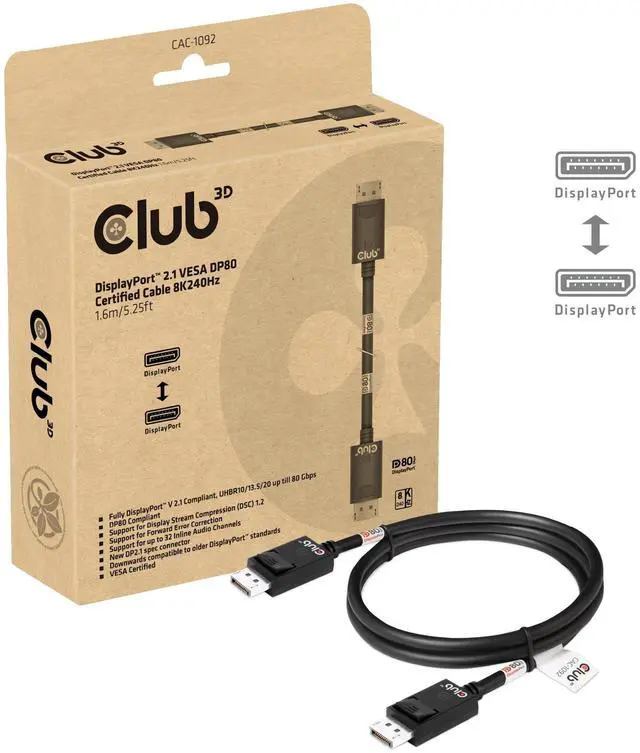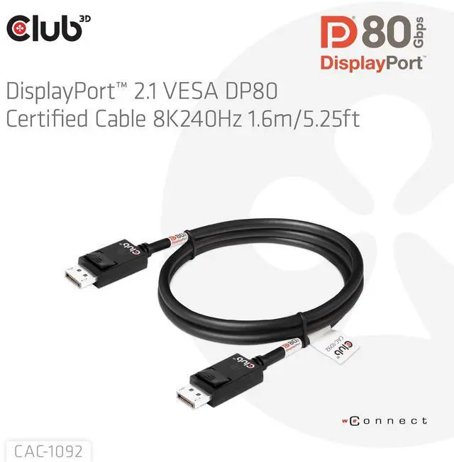 HIGH-SPEED CONNECTIVITY: This DisplayPort 2.1 Bi-Directional VESA DP80 Certified Cable is 1.6 meter ( 160cm) / 5.25 Feet long and offers ultra-fast data transfer speeds of up to 80 Gbps, ensuring seamless and high-quality video and audio transmission between your DisplayPort-supported devices ^^